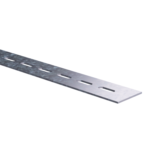 Перфорированная полоса применяется для подвеса конструкций и соединения монтажных элементов. Она имеет перфорацию для крепления по всей длине. Длина полосы - 3000 мм, ширина - 50 мм, толщина стали - 1,5 мм.