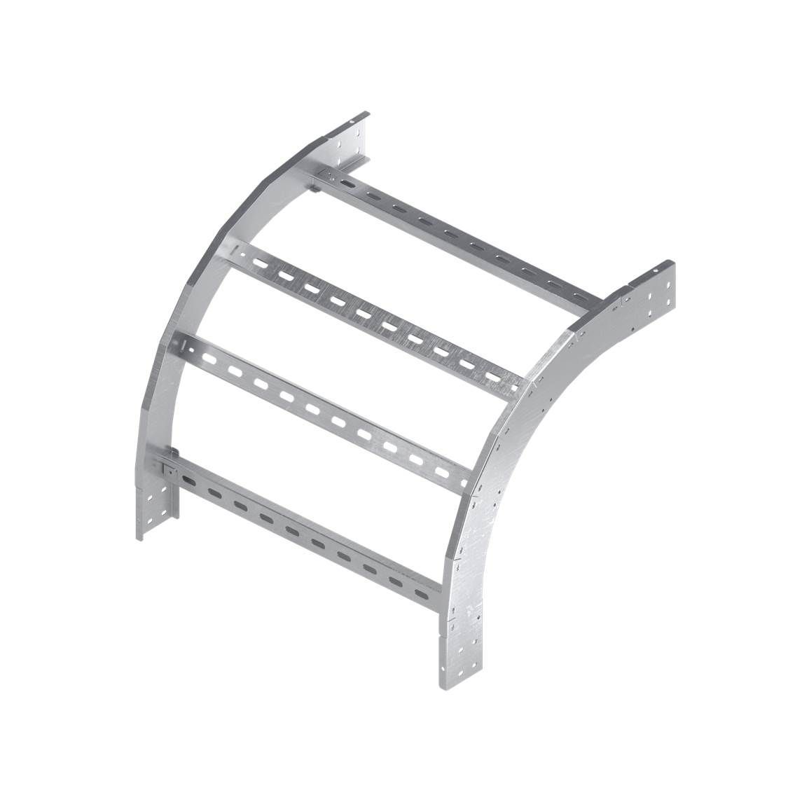 Вертикальный угол 90 градусов обеспечивает поворот трассы в вертикальной плоскости под прямым углом. Плавность поворота облегчает прокладку силового кабеля. Направление -внешний. Ширина -300 мм, высота -150 мм. Исполнение - "Горячий цинк"