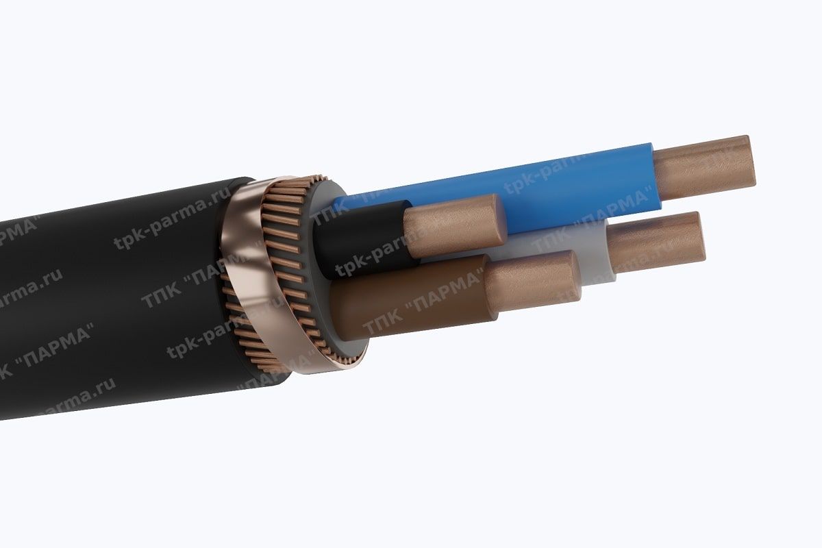 Экран из медных проволок и спирально наложенной медной ленты или медной фольги (в зависимости от конструкции кабеля)